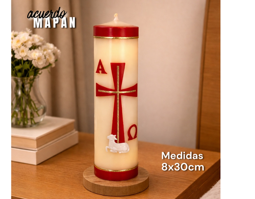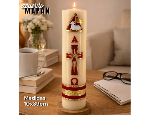 Cirio Pascual con Cristo resucitado en cera 10x44cm -M4